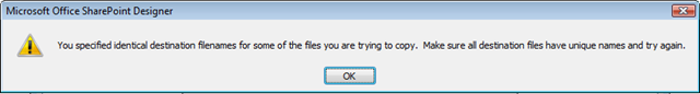 "You specified identical destination filenames for some of the files you are trying to copy. Make sure all of the destination files have unique names and try again."