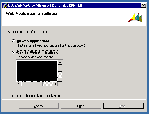 The next screen allows you to deploy the list web part to either All Web Applications, or Specific Web Applications. If you choose a specific web application (only one can be chosen here), you can always run this installer again to install to different web applications in the future if needed.