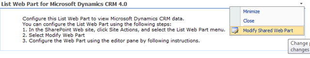 On December 12, 2008, the Microsoft CRM Team announced the release of the CRM List Web Part for Microsoft Dynamics CRM 4.0.