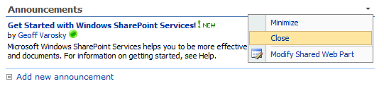 This screen is also very handy for removing any closed web parts (or any others for that matter). To do so, check the box next to the web parts that are to be removed, and then click the Delete option within the toolbar above.