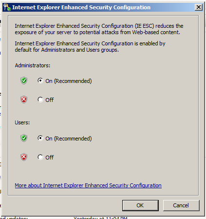 Turning Off Internet Explorer Enhanced Security Configuration in Windows Server 2008 R2