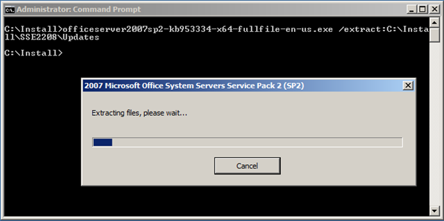 officeserver2007sp2-kb953334-x64-fullfile-en-us.exe /extract:drive:\path\folder\Updates