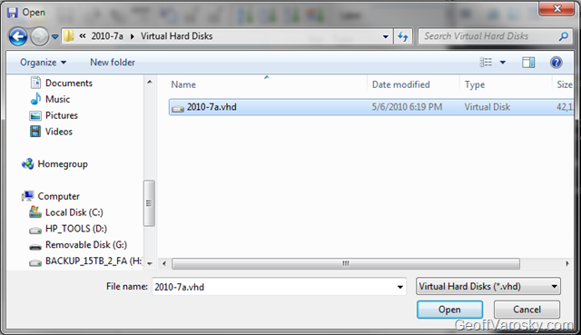 Select the 2010-7a VHD first located in the Virtual Hard Disks folder