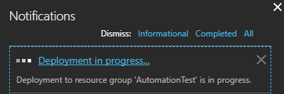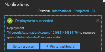 Once done… access it either by the Automation Accounts blade on the left side, or, via the Notifications link Go to resource once its done deploying.