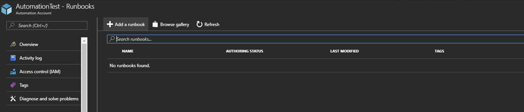 Then click Add a runbook at the top of the runbooks dashboard