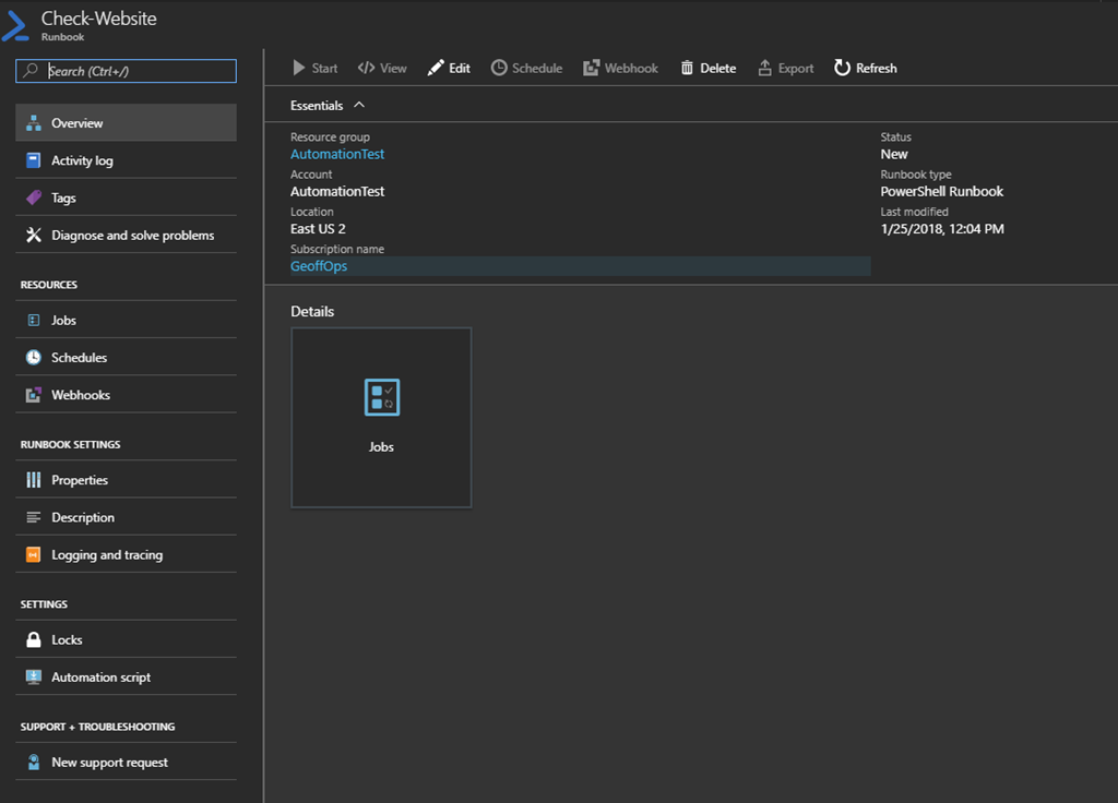 In our runbook, if we go to Jobs under Resources