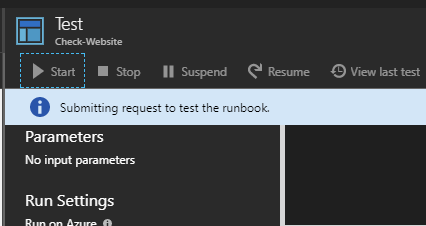In comes the Azure Automation Runbook. You create a PowerShell script that is hosted in Azure (a Runbook), and when your script detects that the service is not responding, it makes a call out to a URL, and the URL runs the Runbook, which restarts the Azure App Service. The monitoring script then runs again, sees that the service is back up, and the appropriate steps are taken.