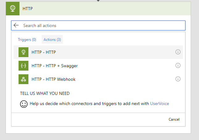 Click on Search at the bottom of the next screen, and search for SharePoint created… we want to add a trigger for when a new item is created in our list.