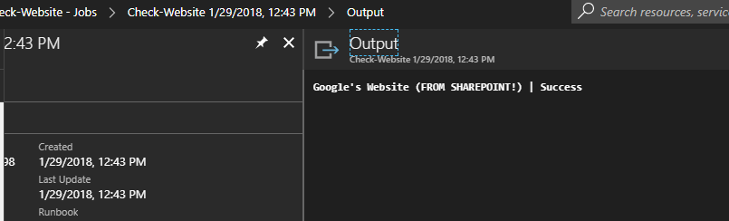It worked! It’s a day of miracles people! While this is not a really exciting example, it shows how to use Azure Runbooks and Webhooks, and how they can be accessed remotely to do a specific task.